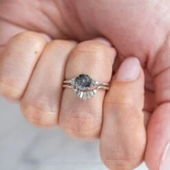 1.90 Carat Salt And Pepper Pear Diamond Engagement Ring, Jules Setting, 14K White Gold