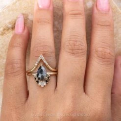 1.94 Carat Black Speckled Pear Diamond Engagement Ring, Ombre Wren Setting, 14k Yellow Gold