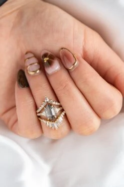 2.08 Carat Black Speckled Hexagon Diamond Engagement Ring, Eliza Setting, 14K Yellow Gold