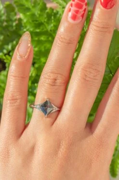 1.06 Carat Black Speckled Kite Diamond Engagement Ring, Leaf Quinn Setting, 14k Rose Gold