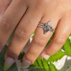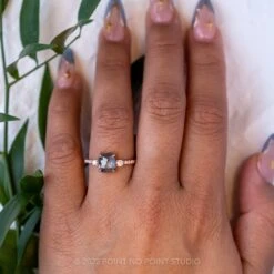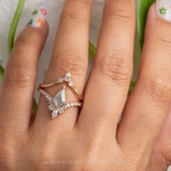 1.25 Carat Salt And Pepper Kite Diamond Engagement Ring, Bezel Wren Setting, 14K Peach Gold