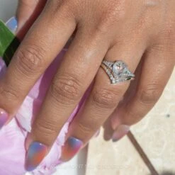 1.24 Carat Icy White Pear Diamond Engagement Ring, Split Shank Evie Setting, 14k White Gold