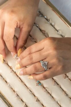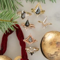 1.31 Carat Black Speckled Pear Diamond Engagement Ring, Avaline Setting, 14K Yellow Gold