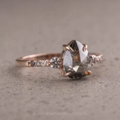 1.65 Carat Black Speckled Pear Diamond Engagement Ring, Ombre Eliza Setting, 14K Rose Gold