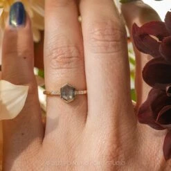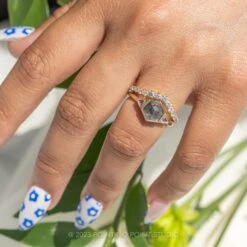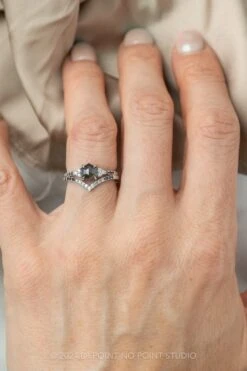 1.81 Carat Black Hexagon Diamond Engagement Ring, Black Diamond Evie Setting, Platinum