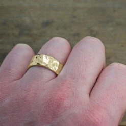 8mm, Comfort Fit, 14k Yellow Gold Hammered Mens Wedding Band, High Polish