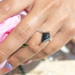 1.40 Carat Opaque Black Kite Diamond Engagement Ring, Juliette Setting, 14K Yellow Gold
