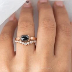1.40 Carat Black Speckled Pear Diamond Engagement Ring, Ombre Wren Setting, 14K Rose Gold