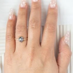 1.21 Carat Salt And Pepper Hexagon Diamond Engagement Ring, Jane Setting, 14K Yellow Gold