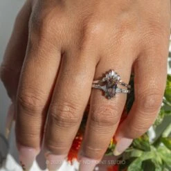 1.59 Carat Salt And Pepper Hexagon Diamond Engagement Ring, Eliza Setting, 14k White Gold
