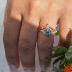 1.14 Carat Black Speckled Kite Diamond Engagement Ring, Willa Setting, 14K Yellow Gold
