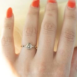 1.36 Carat Salt And Pepper Pear Diamond Engagement Ring, Avaline Setting, 14K Yellow Gold