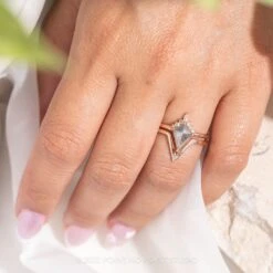 1.52 Carat Salt And Pepper Emerald Shaped Diamond Engagement Ring, Zoe Setting, 14K Yellow Gold