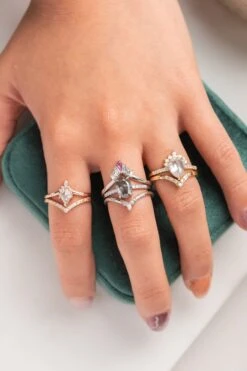 1.78 Carat Salt And Pepper Lozenge Diamond Engagement Ring, Alexandria Setting, 14k Rose Gold