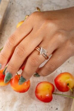 2.03 Carat Orange Speckled Icy White Triangle Diamond Engagement Ring, Jane Setting, 14K Rose Gold