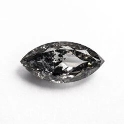 1.56 Carat Black Speckled Marquise Diamond Engagement Ring, Ombre Eliza Setting, 14K Yellow Gold