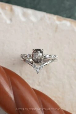 1.64 Carat Canadian Salt And Pepper Oval Diamond Engagement Ring, Basket Jane Setting, 14k Rose Gold