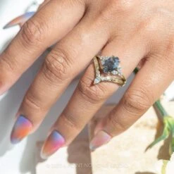 1.72 Carat Salt And Pepper Oval Diamond Engagement Ring, Quinn Setting, 14K Yellow Gold