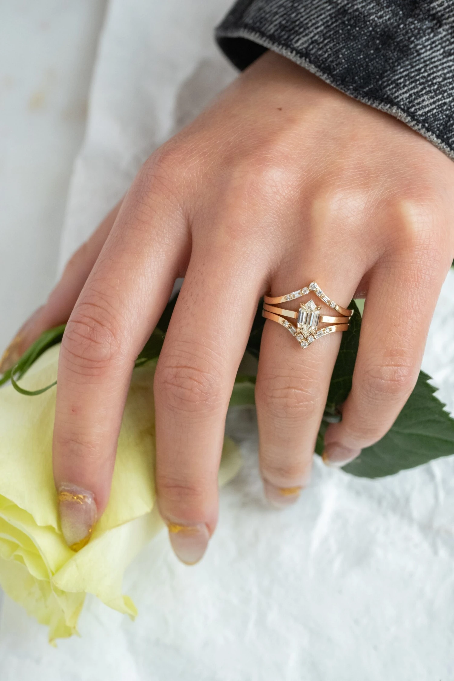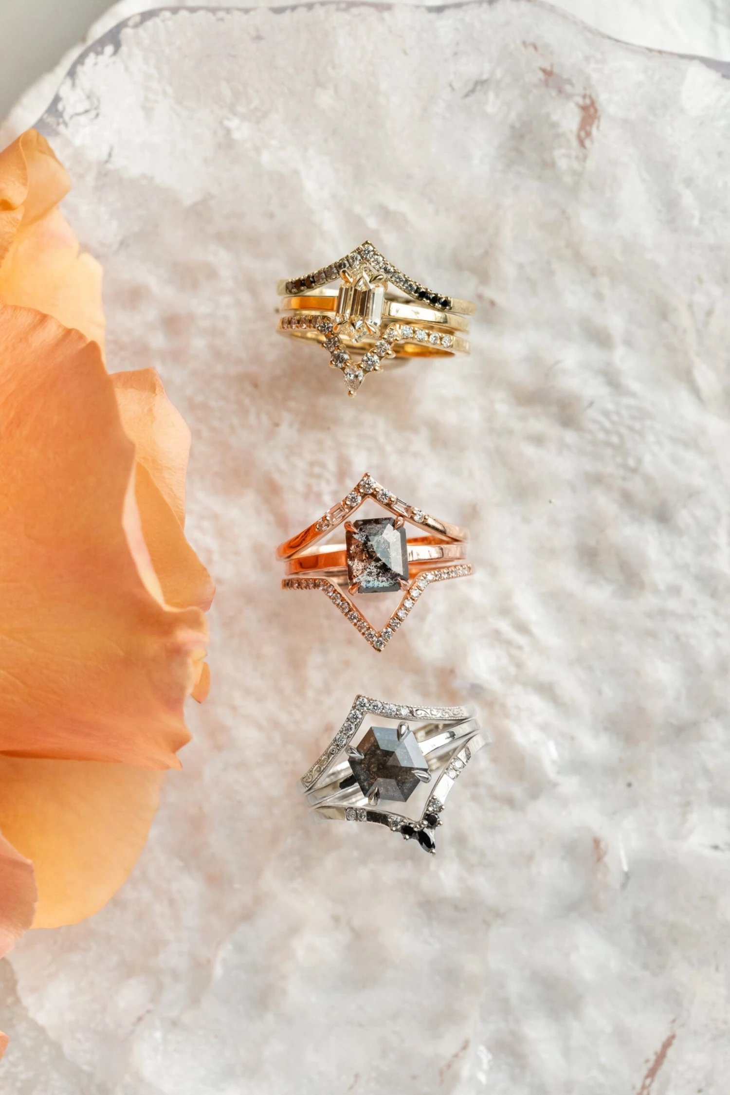 Wedding Rings: This engagement ring can be stacked with ANY of our hundreds of wedding ring options, we use the same engagement ring CAD measurements to build the wedding ring around it to ensure a great stacking set.Â
