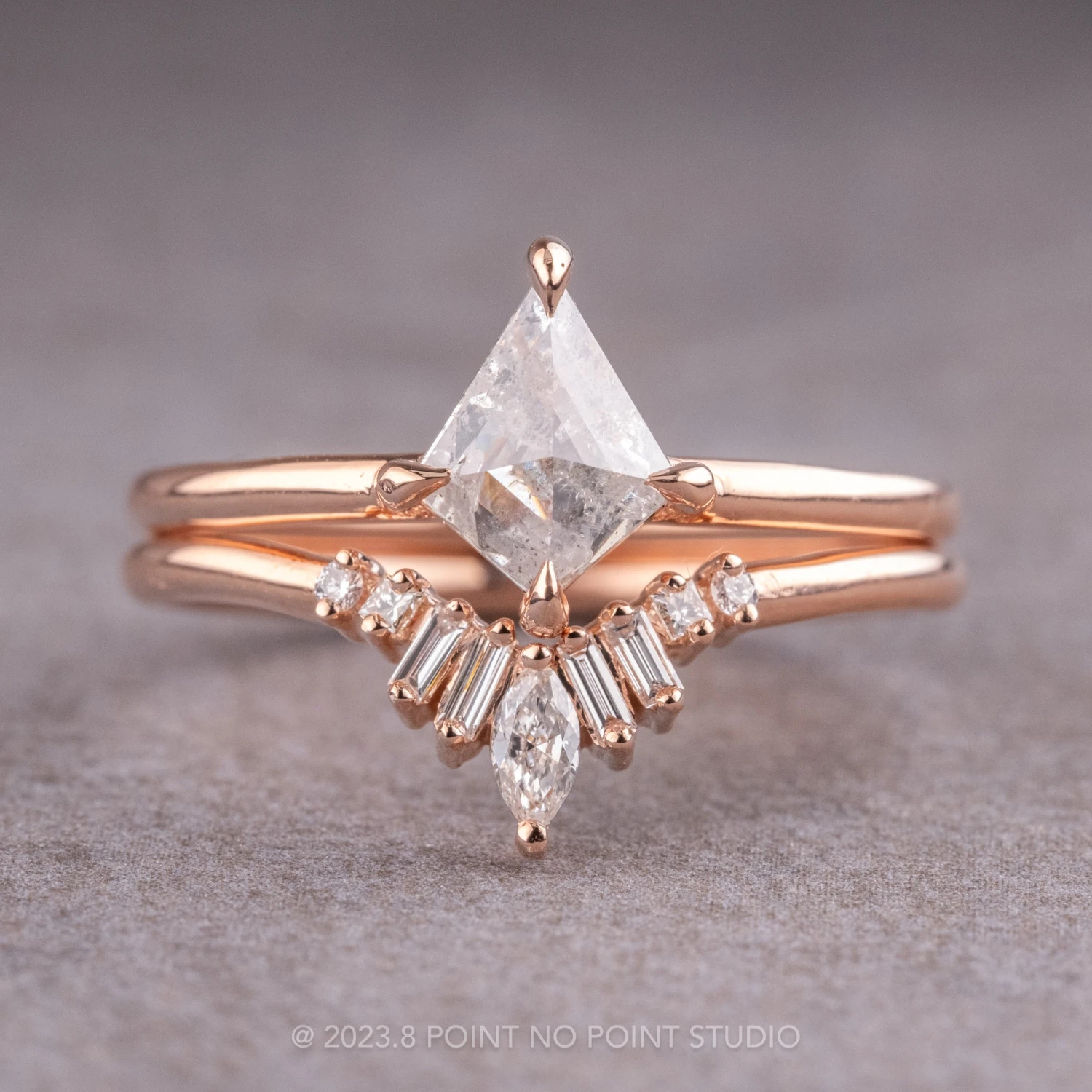 Wedding Rings: This engagement ring can be stacked with ANY of our hundreds of wedding ring options, we use the same engagement ring CAD measurements to build the wedding ring around it to ensure a great stacking set.Â