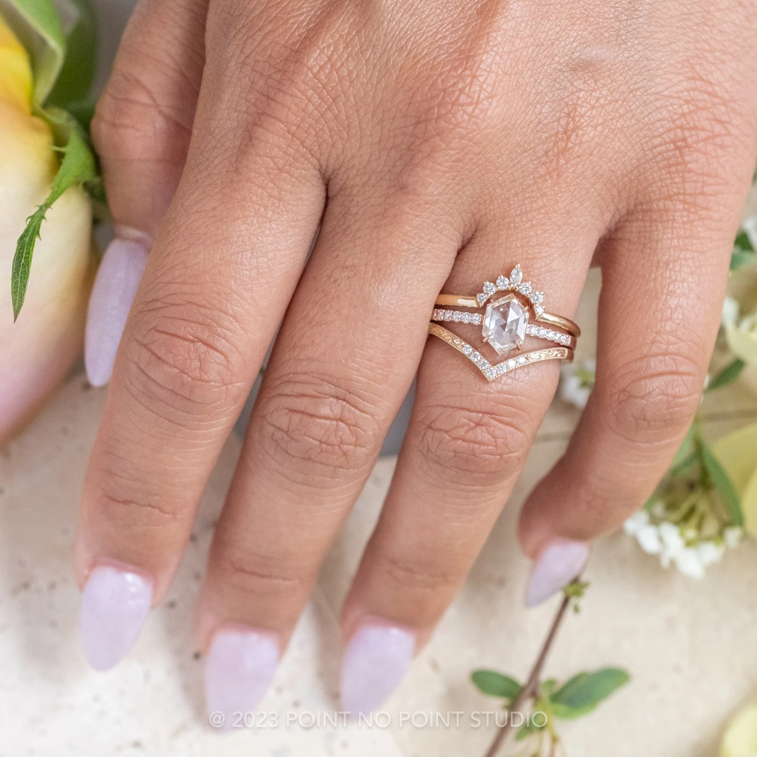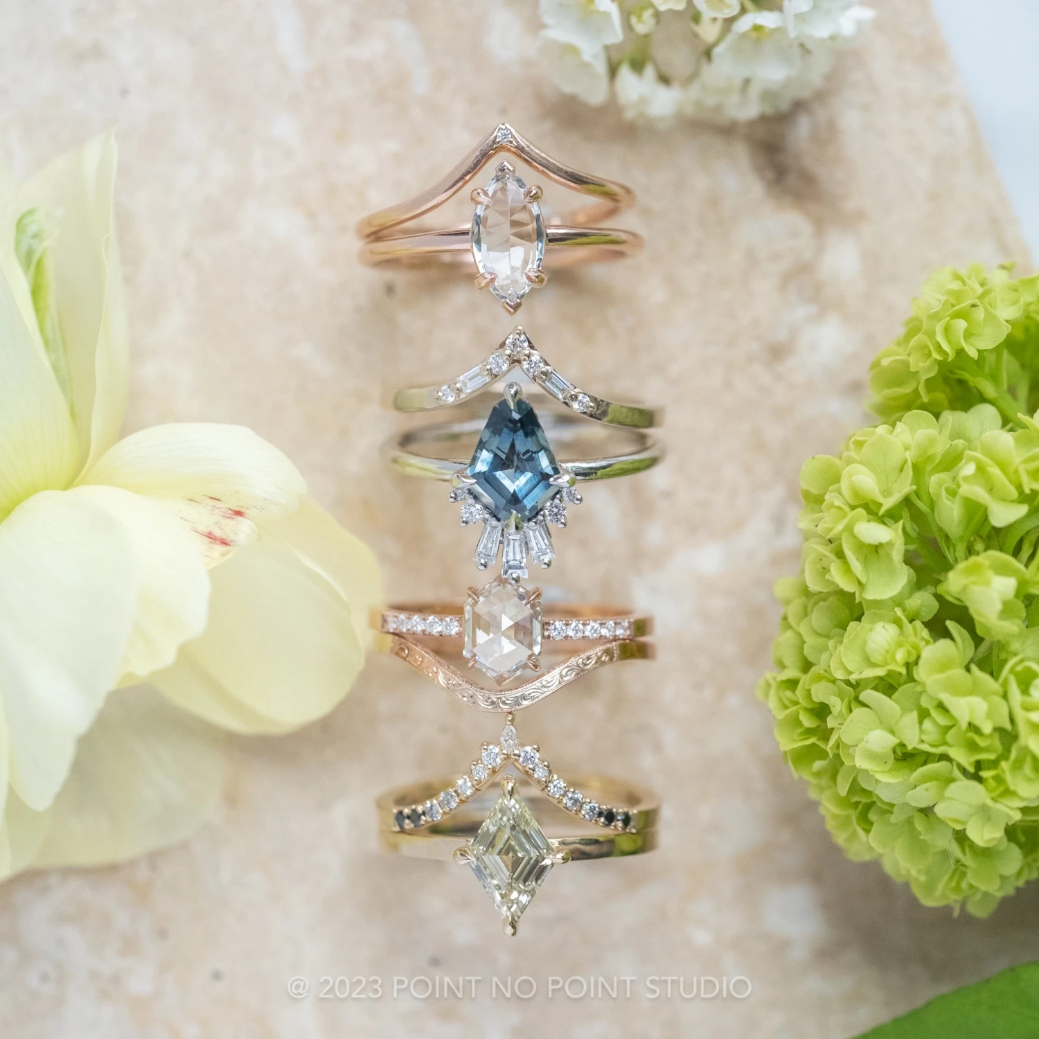 Wedding Rings: This engagement ring can be stacked with ANY of our hundreds of wedding ring options, we use the same engagement ring CAD measurements to build the wedding ring around it to ensure a great stacking set.Â