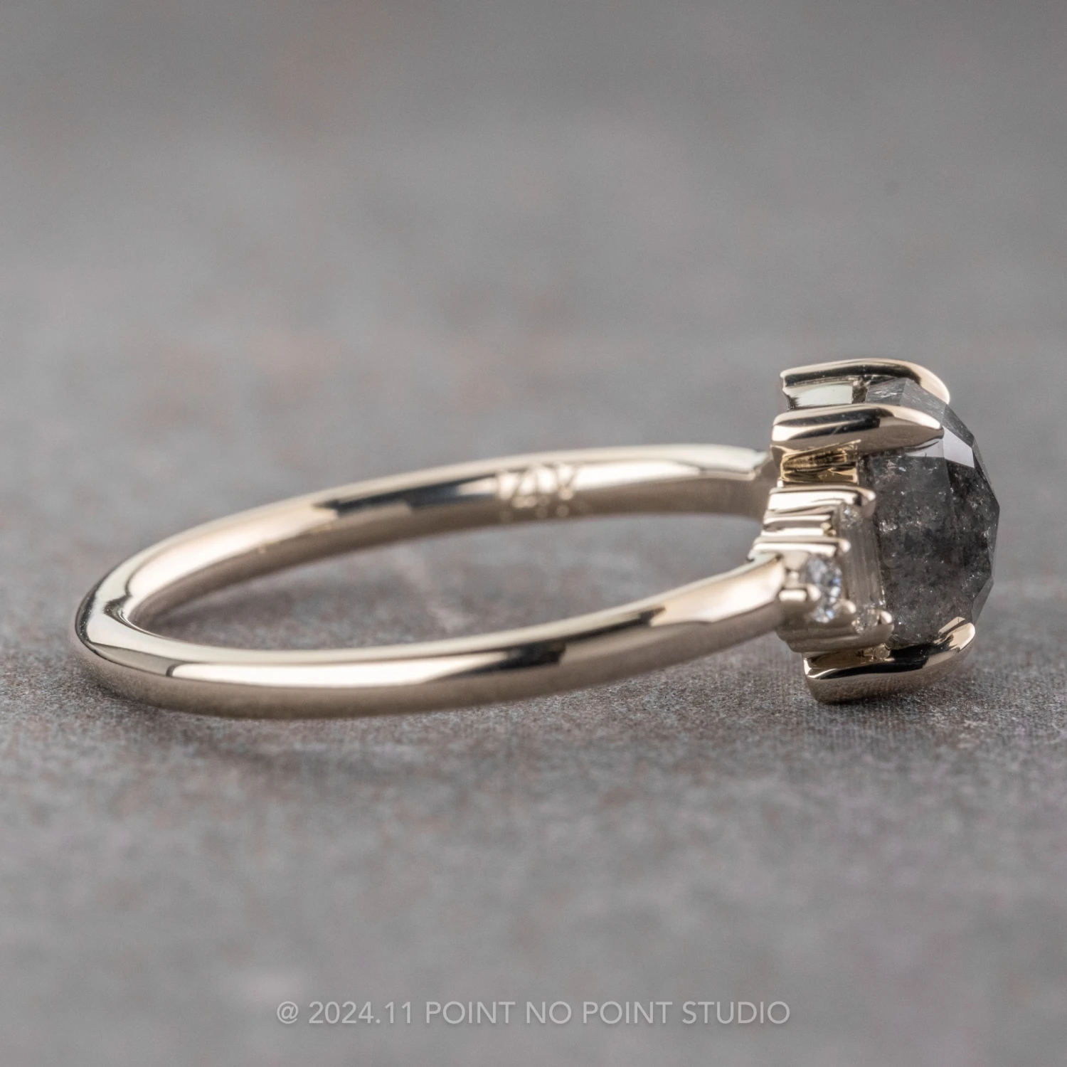 Included with your order – A Point No Point Studio digital ring certificate on a branded PNP USB drive, black velvet clam shell box, and a polishing cloth.