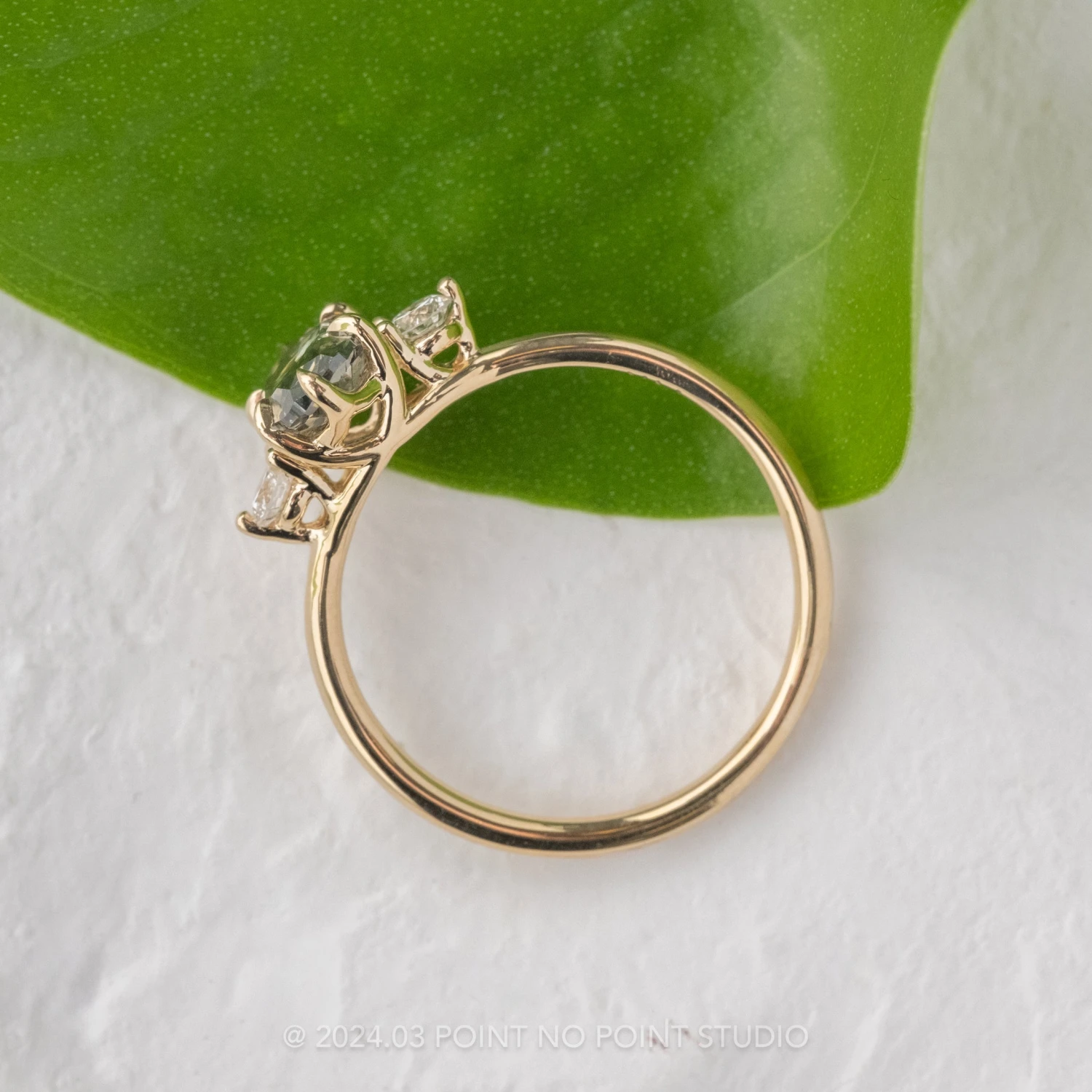 Included with your order – A Point No Point Studio digital ring certificate on a branded PNP USB drive, black velvet clam shell box, and a polishing cloth.