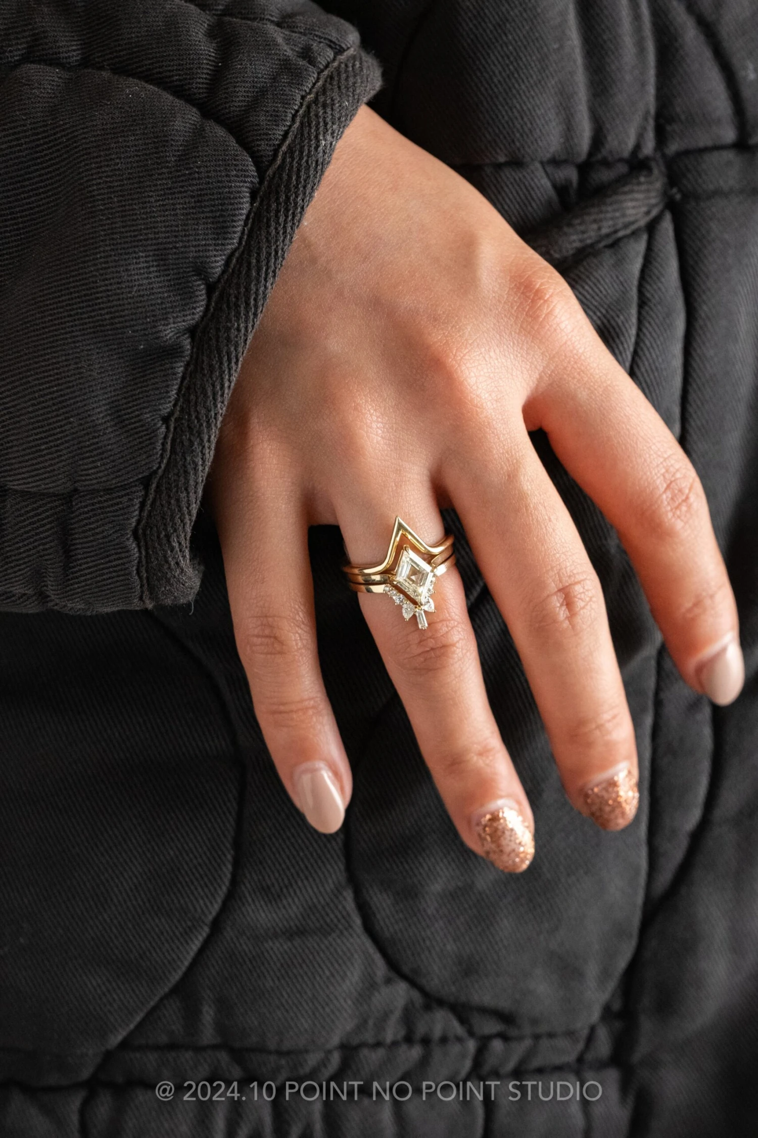 Wedding Rings: This engagement ring can be stacked with ANY of our hundreds of wedding ring options, we use the same engagement ring CAD measurements to build the wedding ring around it to ensure a great stacking set.Â