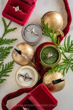 Included with your order – A Point No Point Studio digital ring certificate on a branded PNP USB drive, black velvet clam shell box, and a polishing cloth.