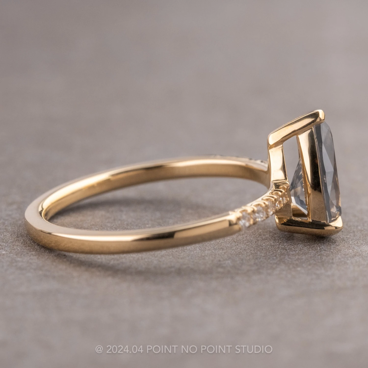 Included with your order – A Point No Point Studio digital ring certificate on a branded PNP USB drive, black velvet clam shell box, and a polishing cloth.