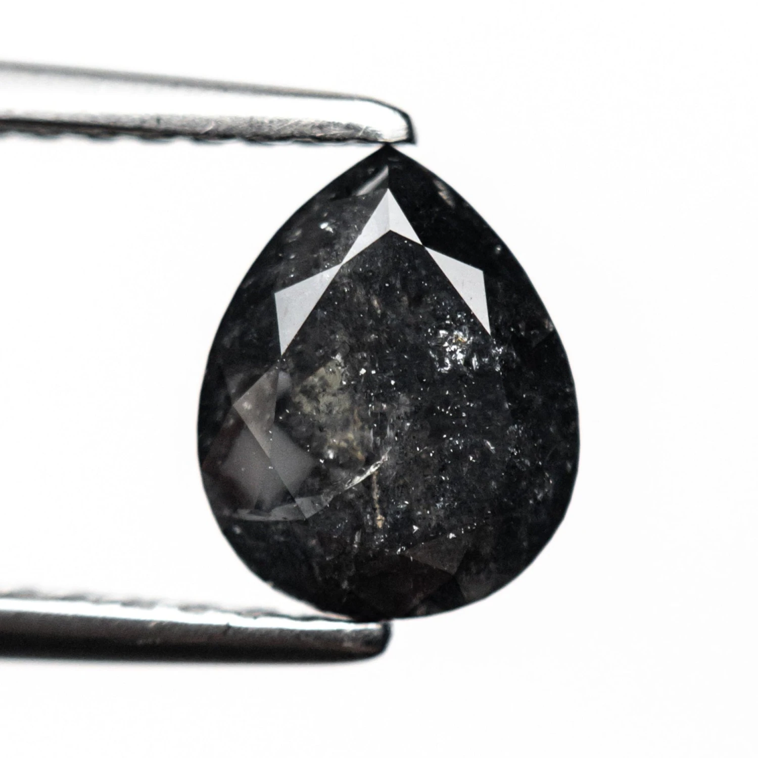 1.29 Carat Black Speckled Double Cut Pear Diamond