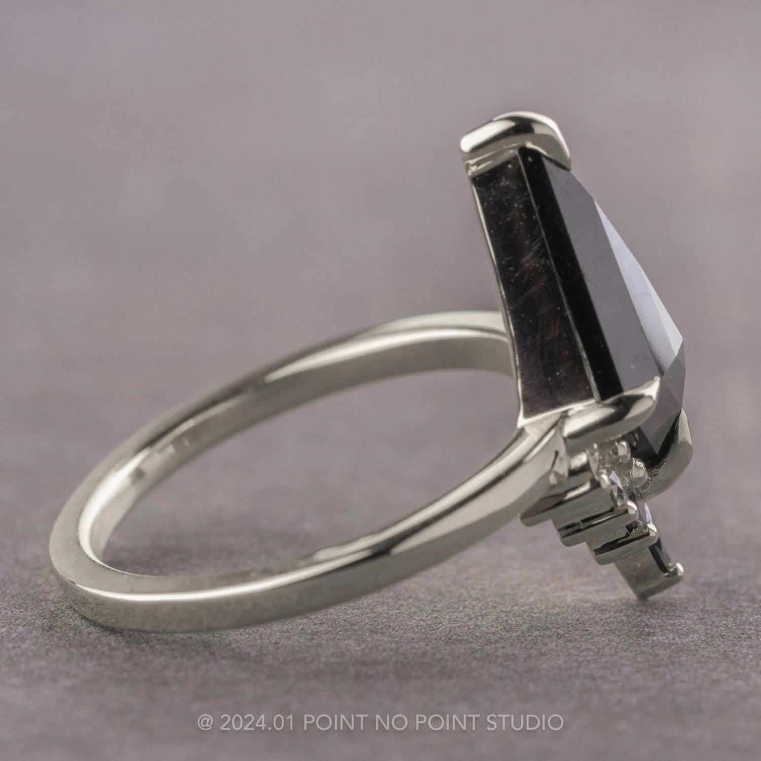Included with your order – A Point No Point Studio digital ring certificate on a branded PNP USB drive, black velvet clam shell box, and a polishing cloth.