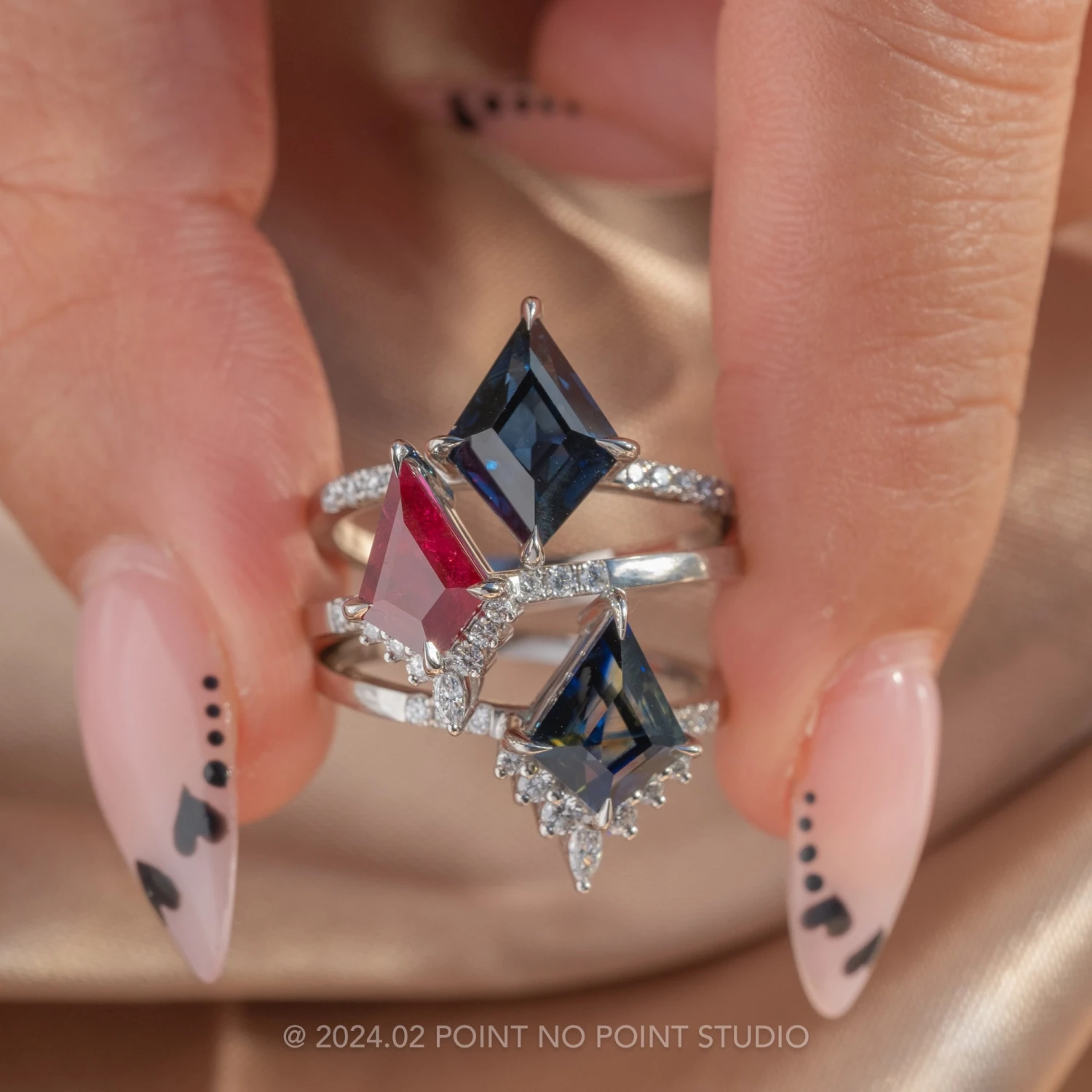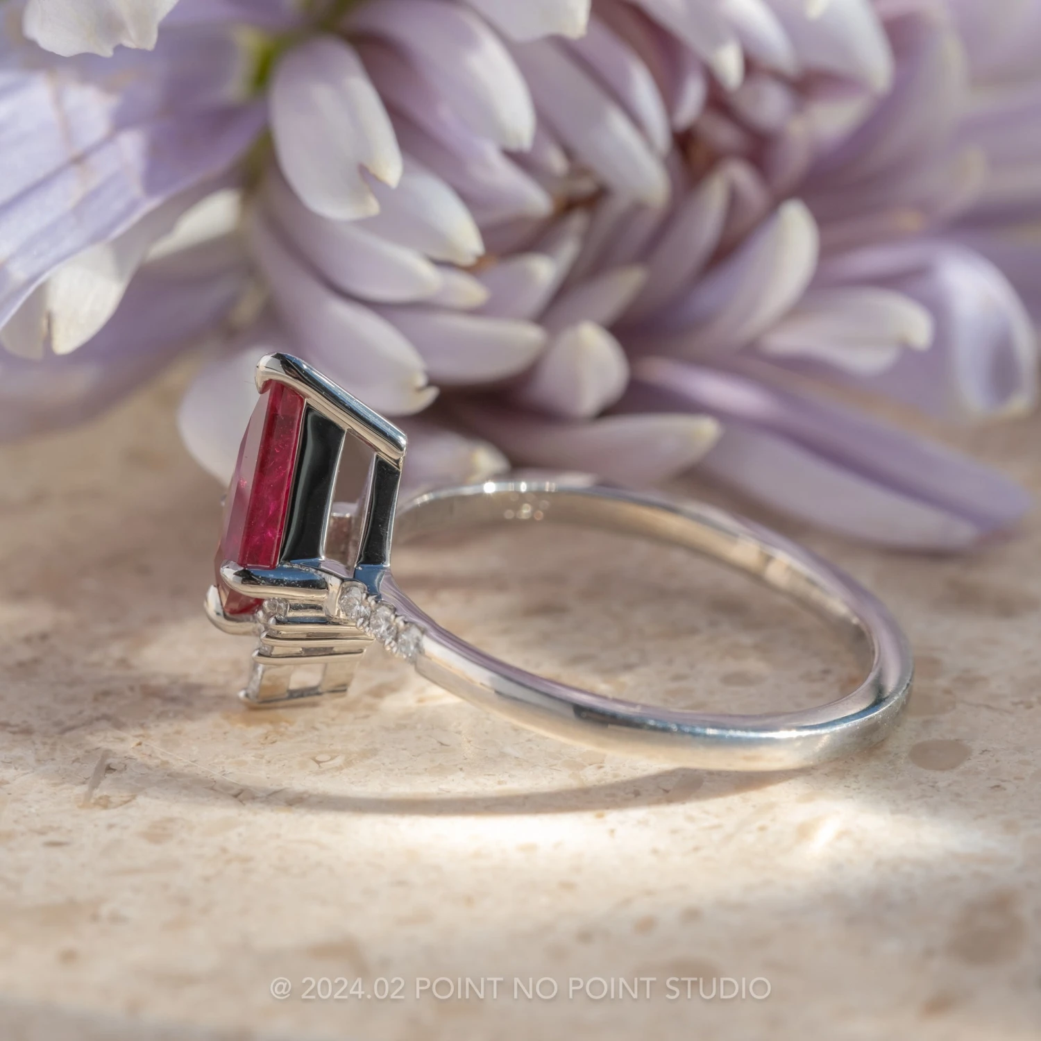 Included with your order – A Point No Point Studio digital ring certificate on a branded PNP USB drive, black velvet clam shell box, and a polishing cloth.