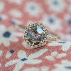 Salt and Pepper Hexagon Diamond Engagement Ring