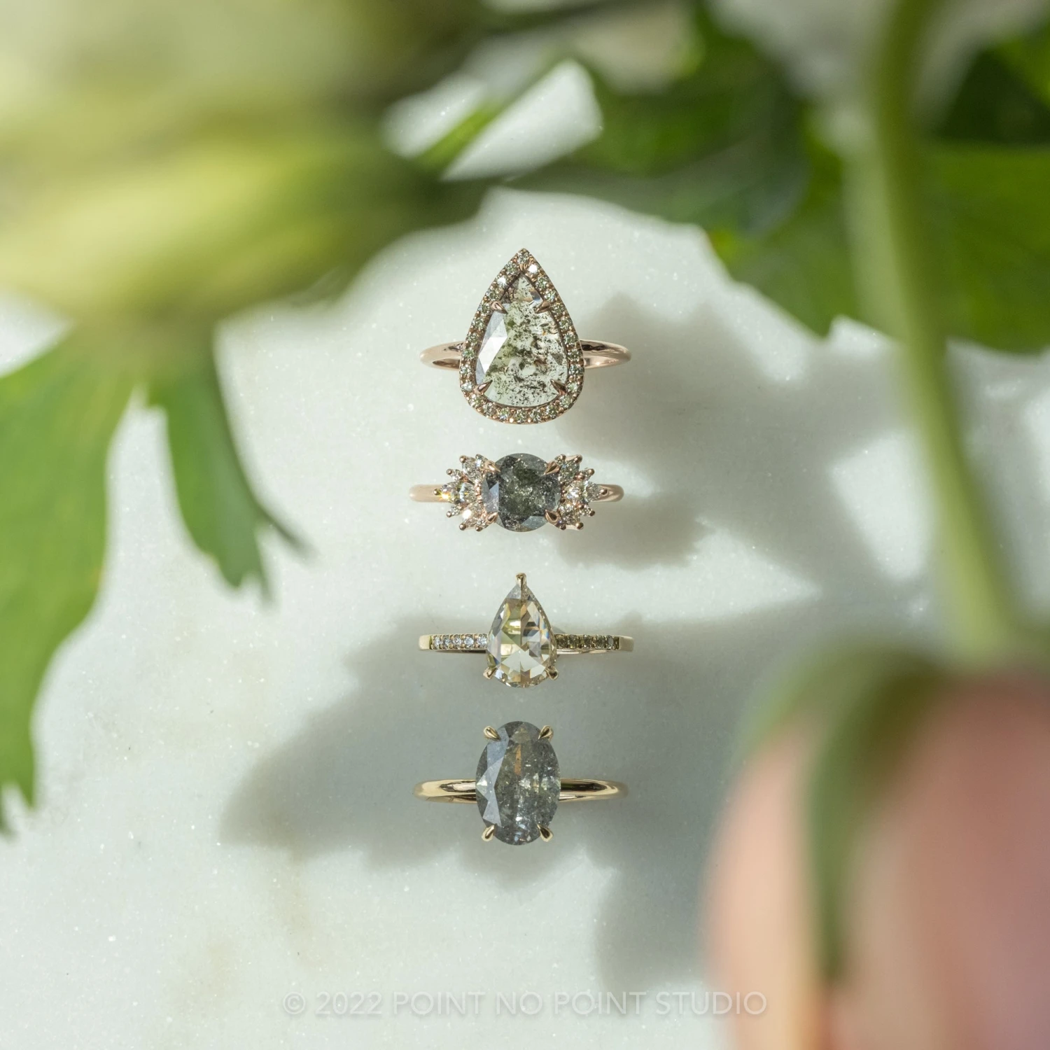 Included with your order – A Point No Point Studio digital ring certificate on a branded PNP USB drive, black velvet clam shell box, and a polishing cloth.