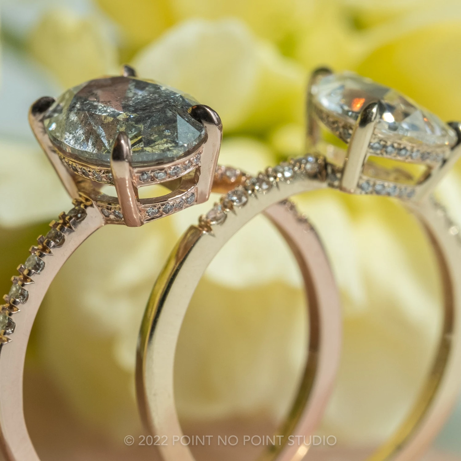 Wedding Rings: This engagement ring can be stacked with ANY of our hundreds of wedding ring options, we use the same engagement ring CAD measurements to build the wedding ring around it to ensure a great stacking set.Â