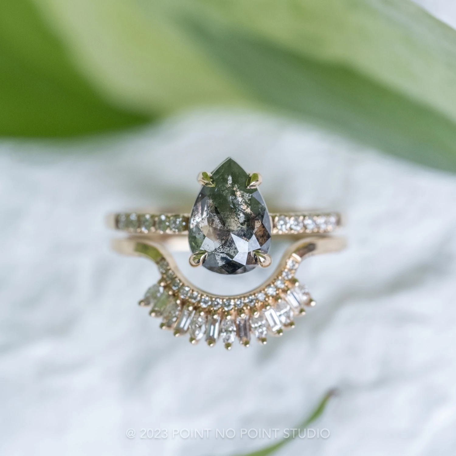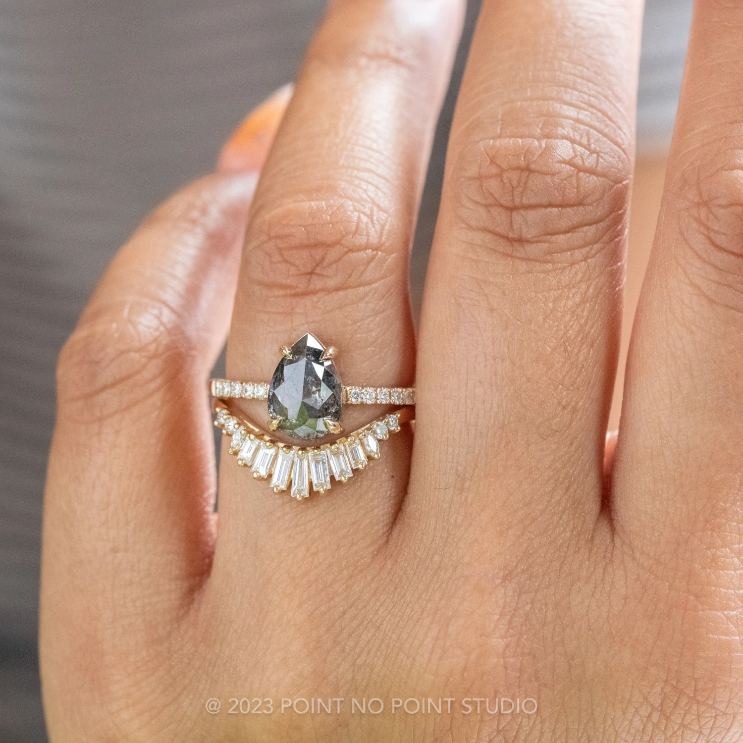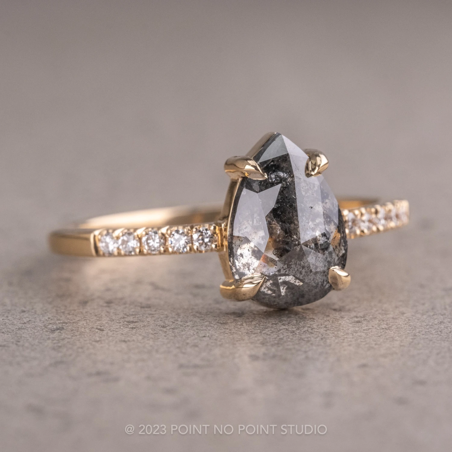 Salt and Pepper Pear Diamond Engagement Ring
