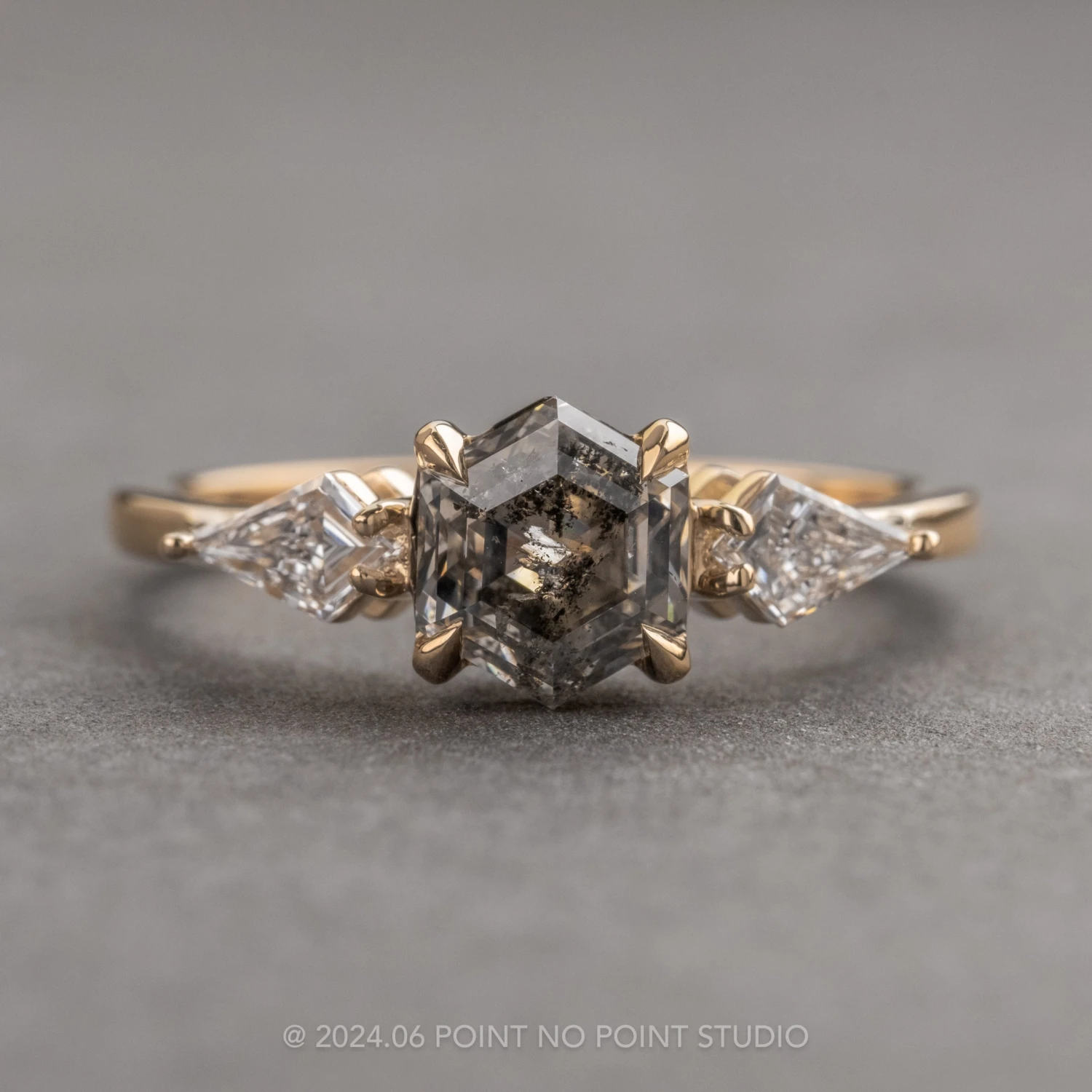 Canadian Salt and Pepper Hexagon Diamond Engagement Ring