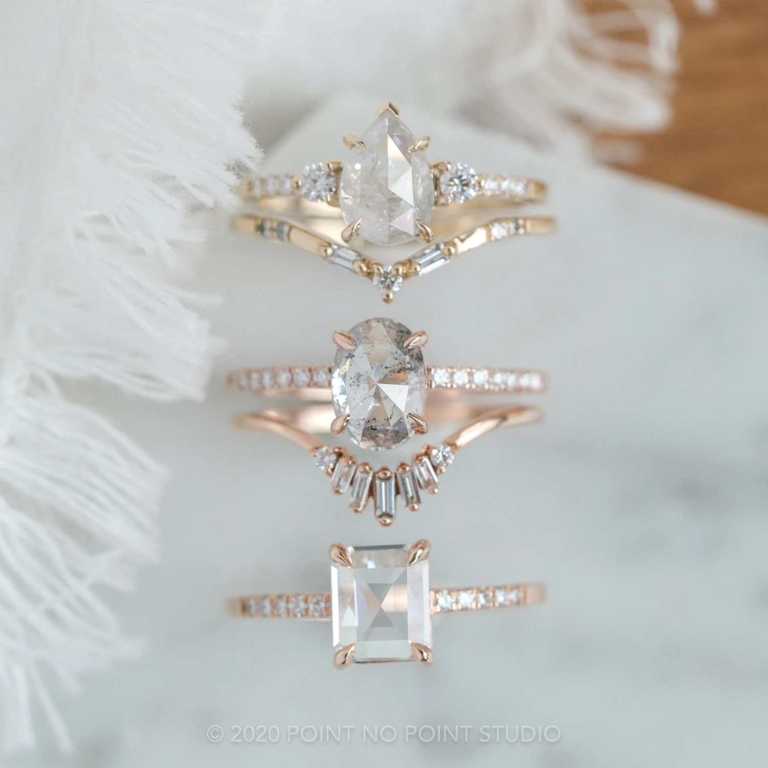 Wedding Rings: This engagement ring can be stacked with ANY of our hundreds of wedding ring options, we use the same engagement ring CAD measurements to build the wedding ring around it to ensure a great stacking set.Â