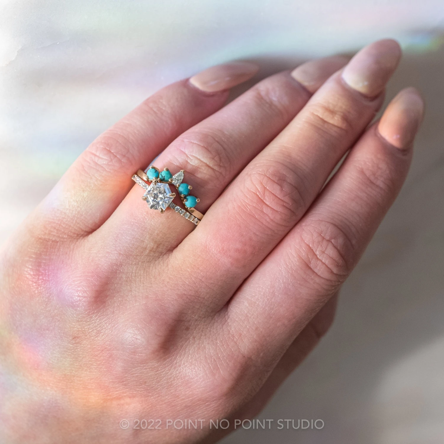 Wedding Rings: This engagement ring can be stacked with ANY of our hundreds of wedding ring options, we use the same engagement ring CAD measurements to build the wedding ring around it to ensure a great stacking set.Â