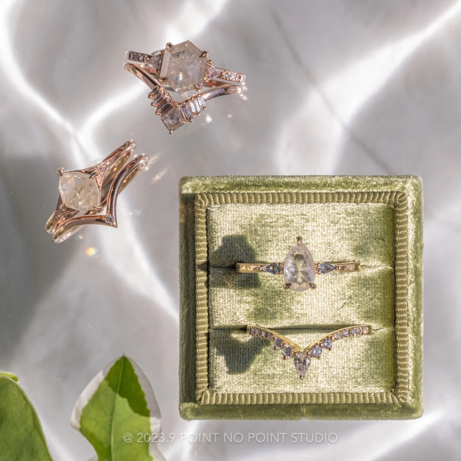 Included with your order – A Point No Point Studio digital ring certificate on a branded PNP USB drive, black velvet clam shell box, and a polishing cloth.