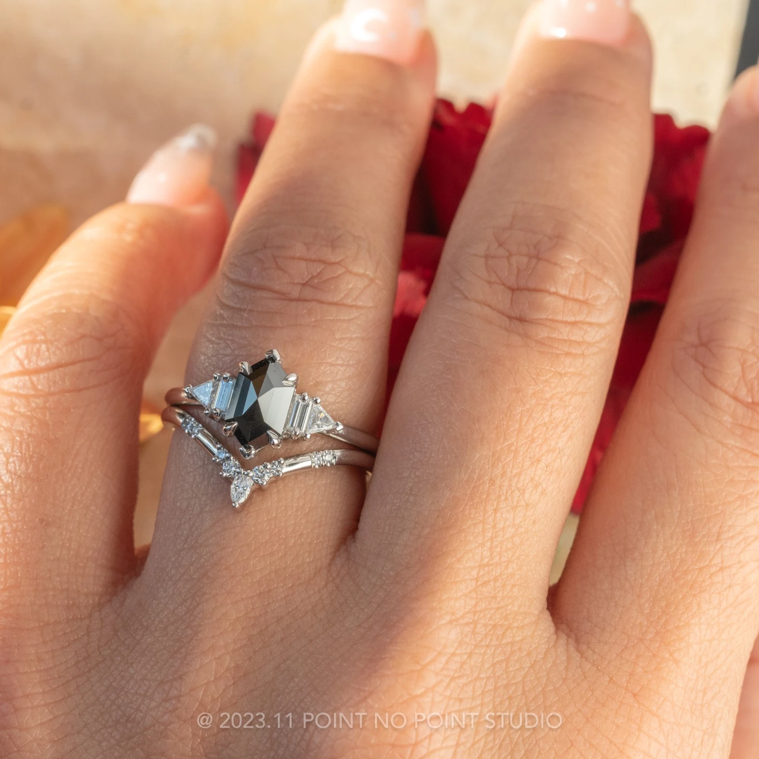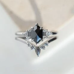 Black Hexagon Diamond Engagement Ring