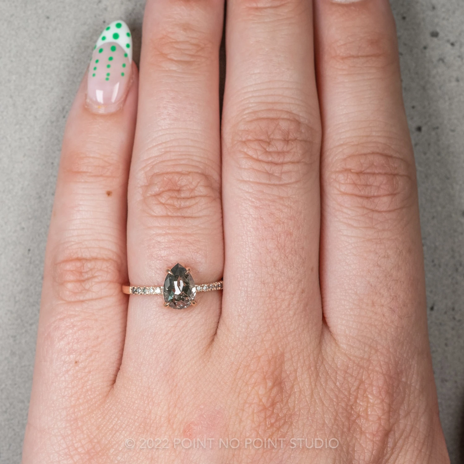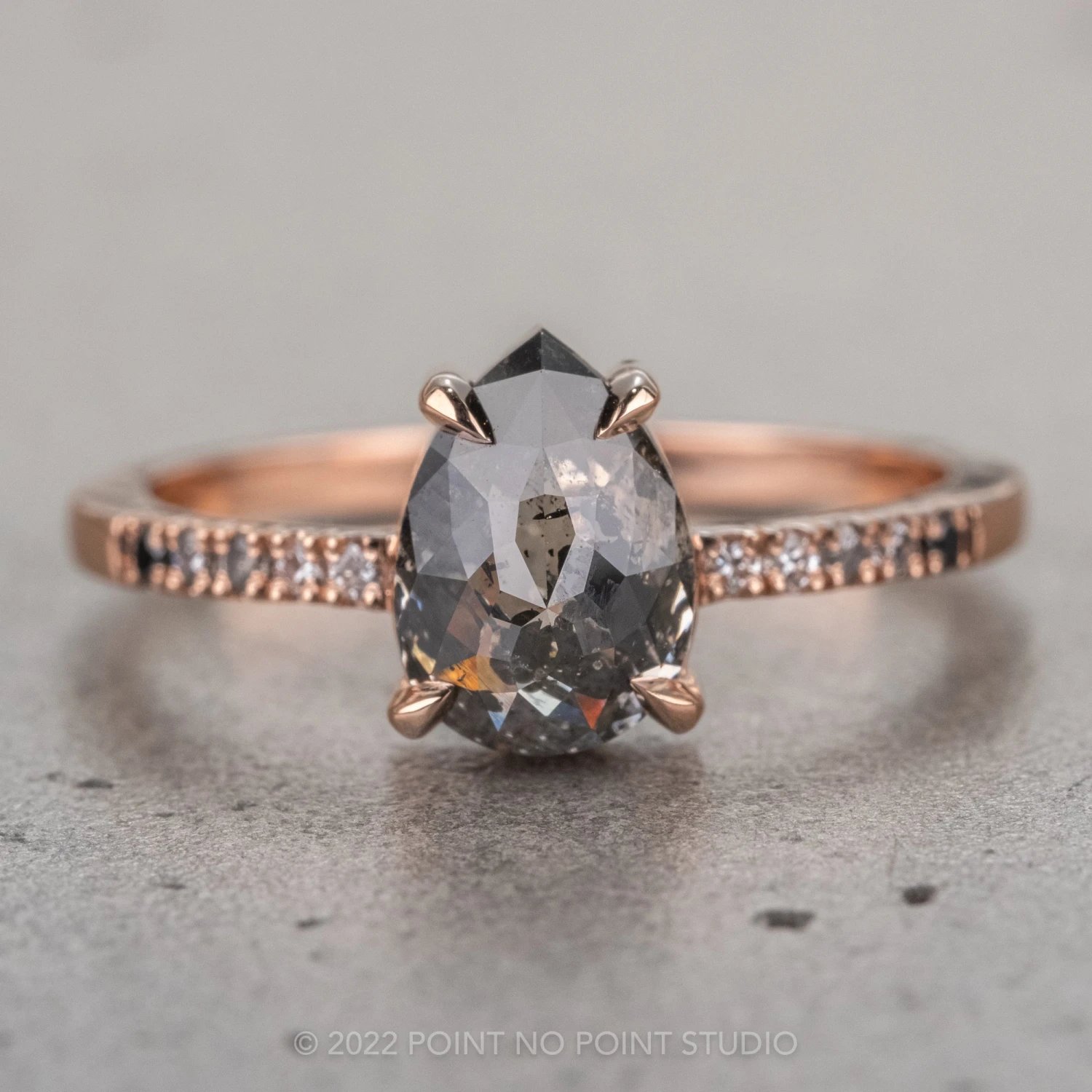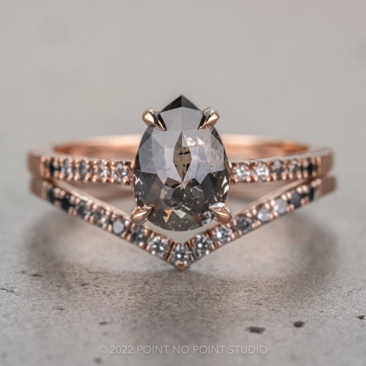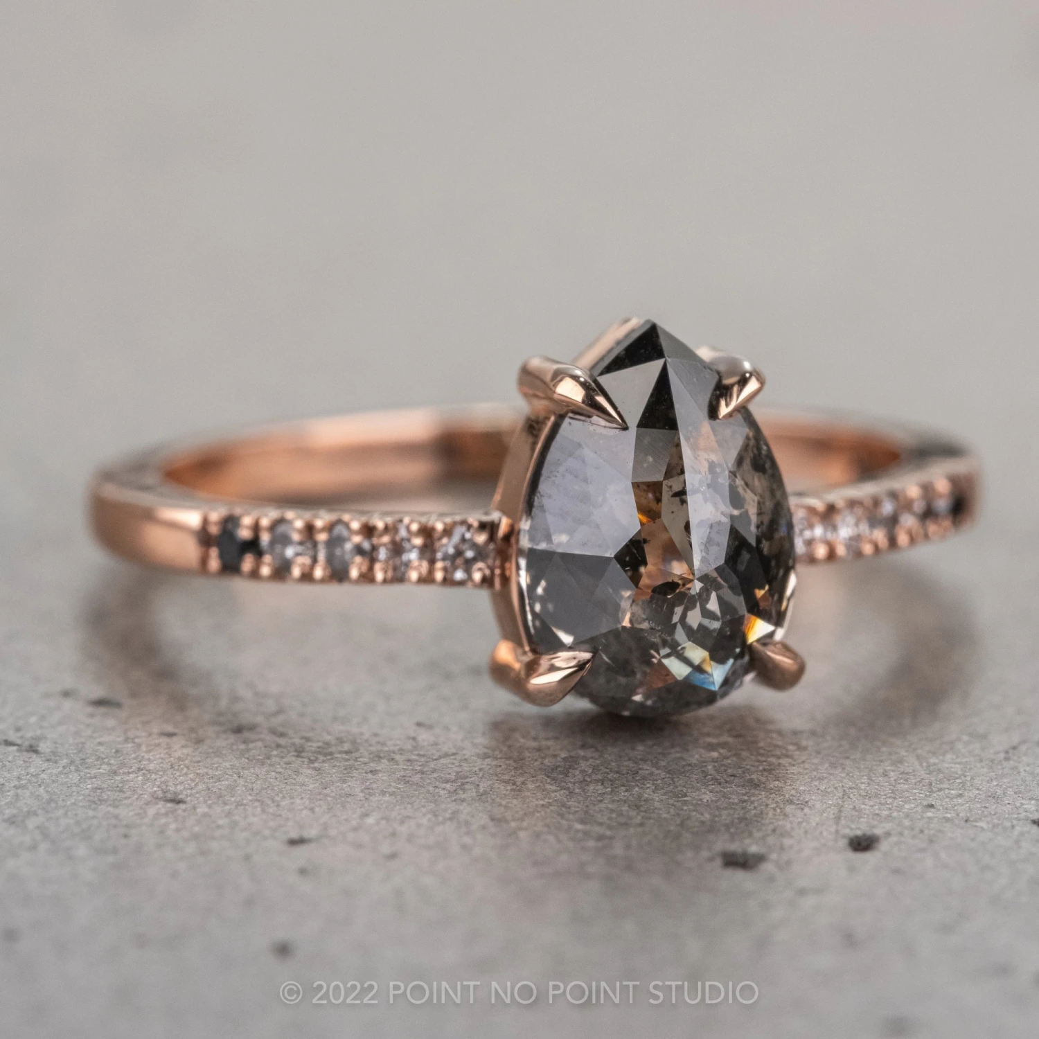 Salt and Pepper Pear Diamond Engagement Ring