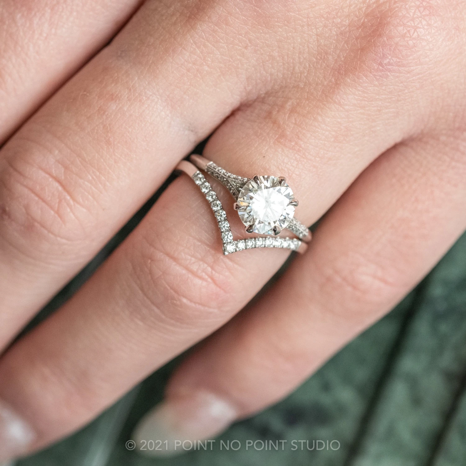 Wedding Rings: This engagement ring can be stacked with ANY of our hundreds of wedding ring options, we use the same engagement ring CAD measurements to build the wedding ring around it to ensure a great stacking set.Â