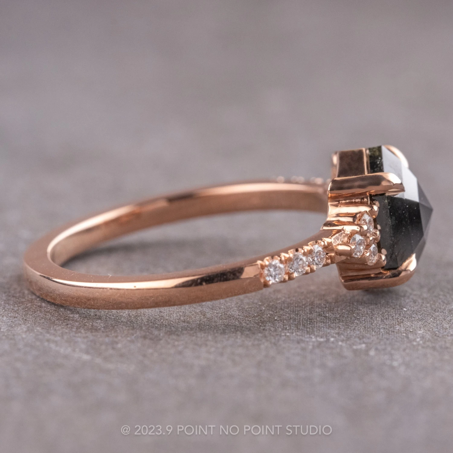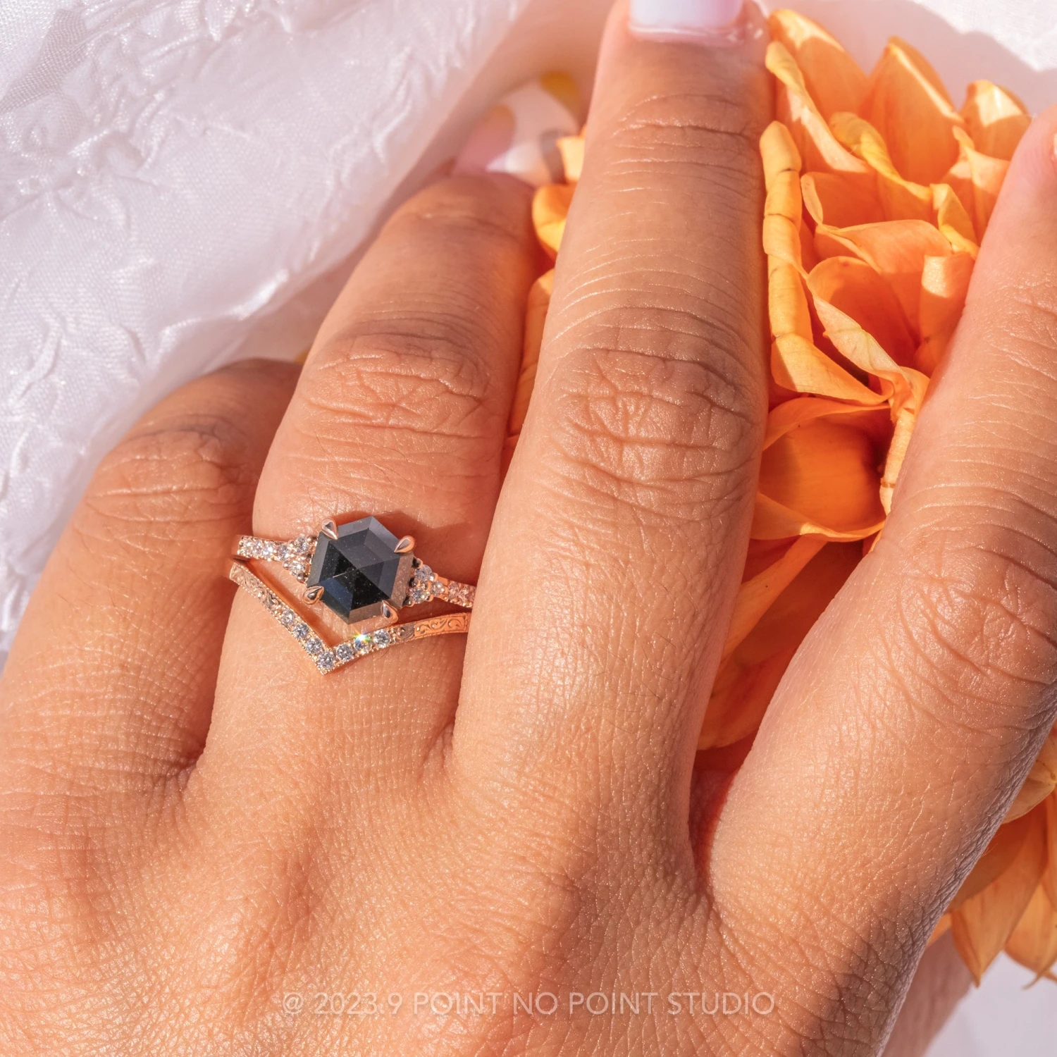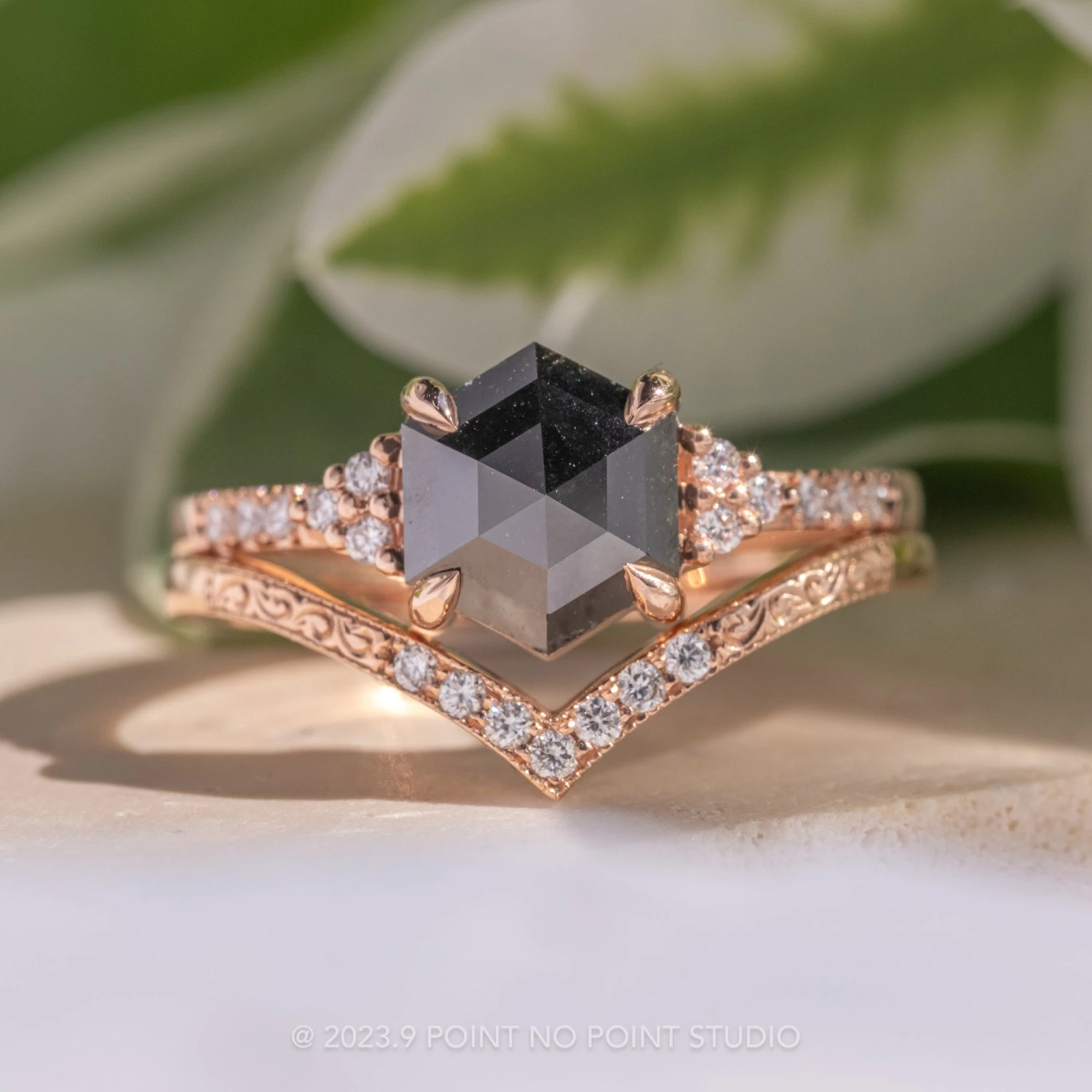 Black Hexagon Diamond Engagement Ring