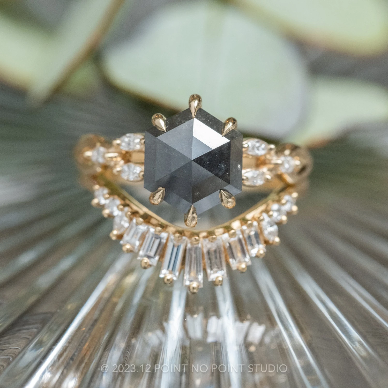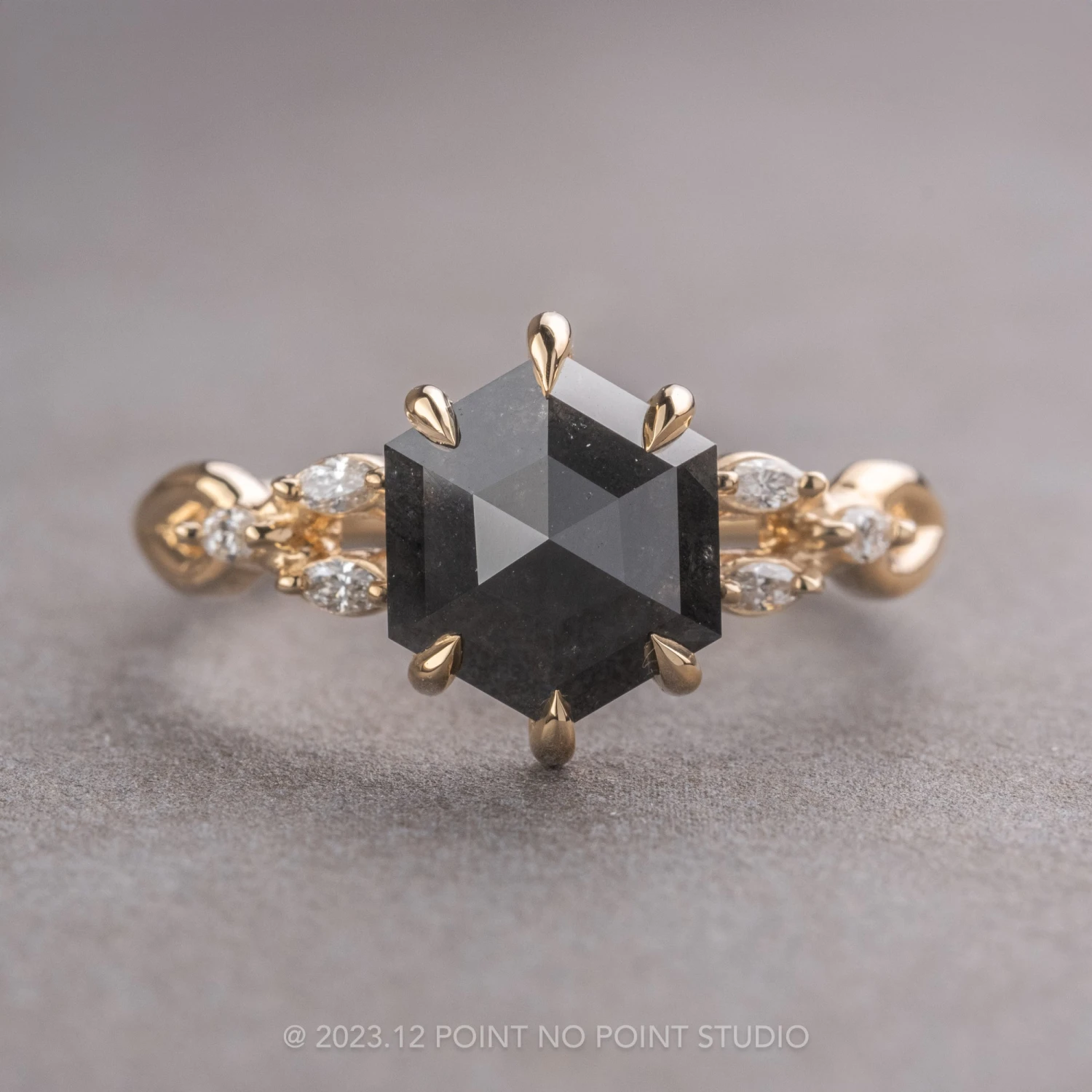 Black Hexagon Diamond Engagement Ring
