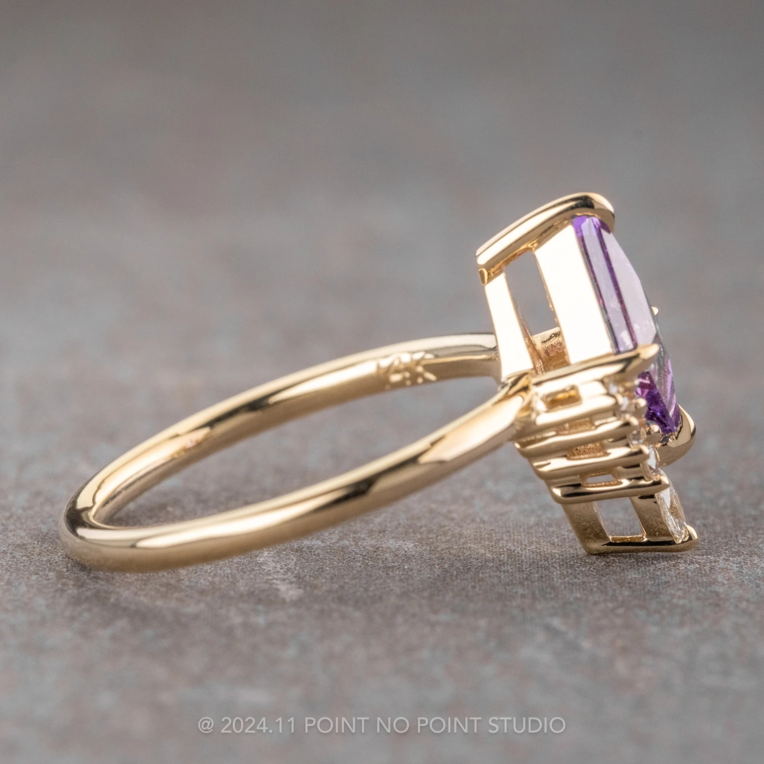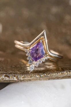 Purple Lozenge Sapphire and Diamond Engagement Ring