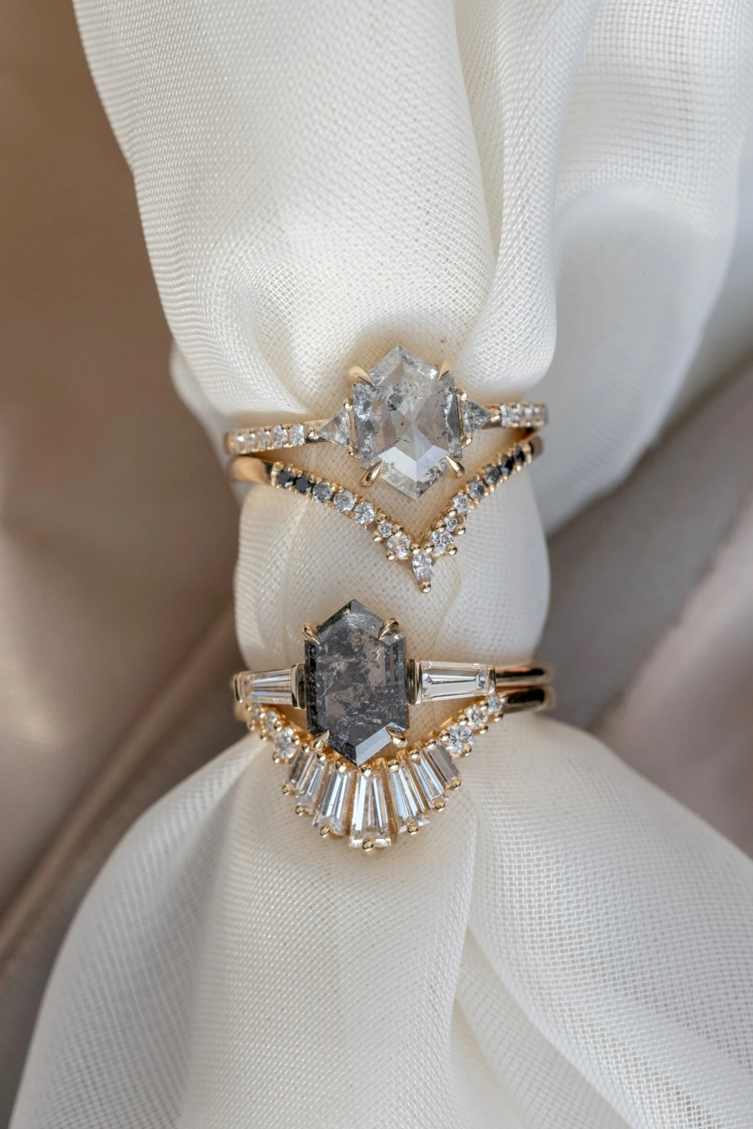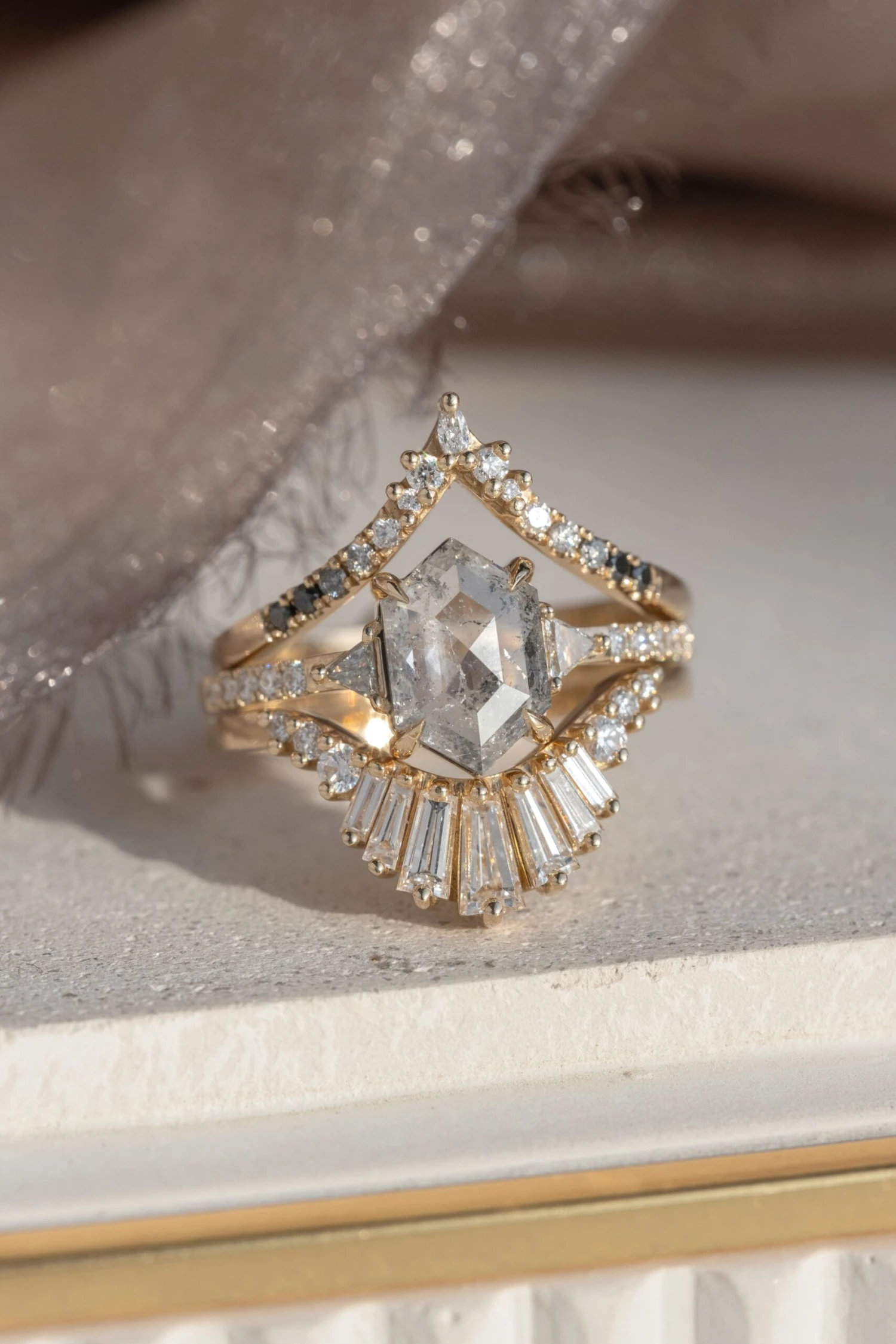 Icy Salt and Pepper Hexagon Diamond Engagement Ring