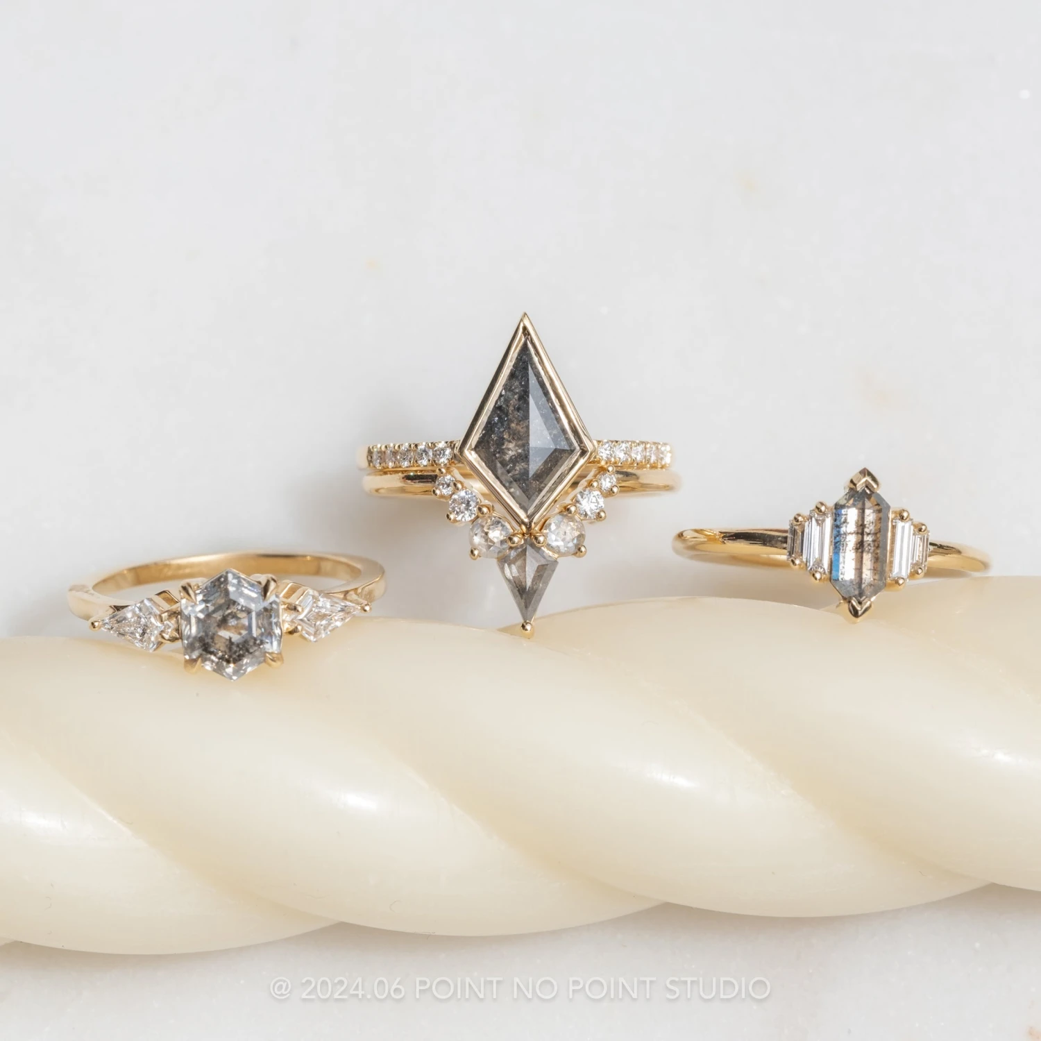 Included with your order – A Point No Point Studio digital ring certificate on a branded PNP USB drive, black velvet clam shell box, and a polishing cloth.