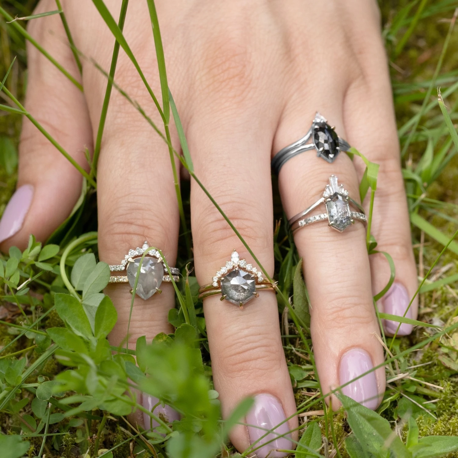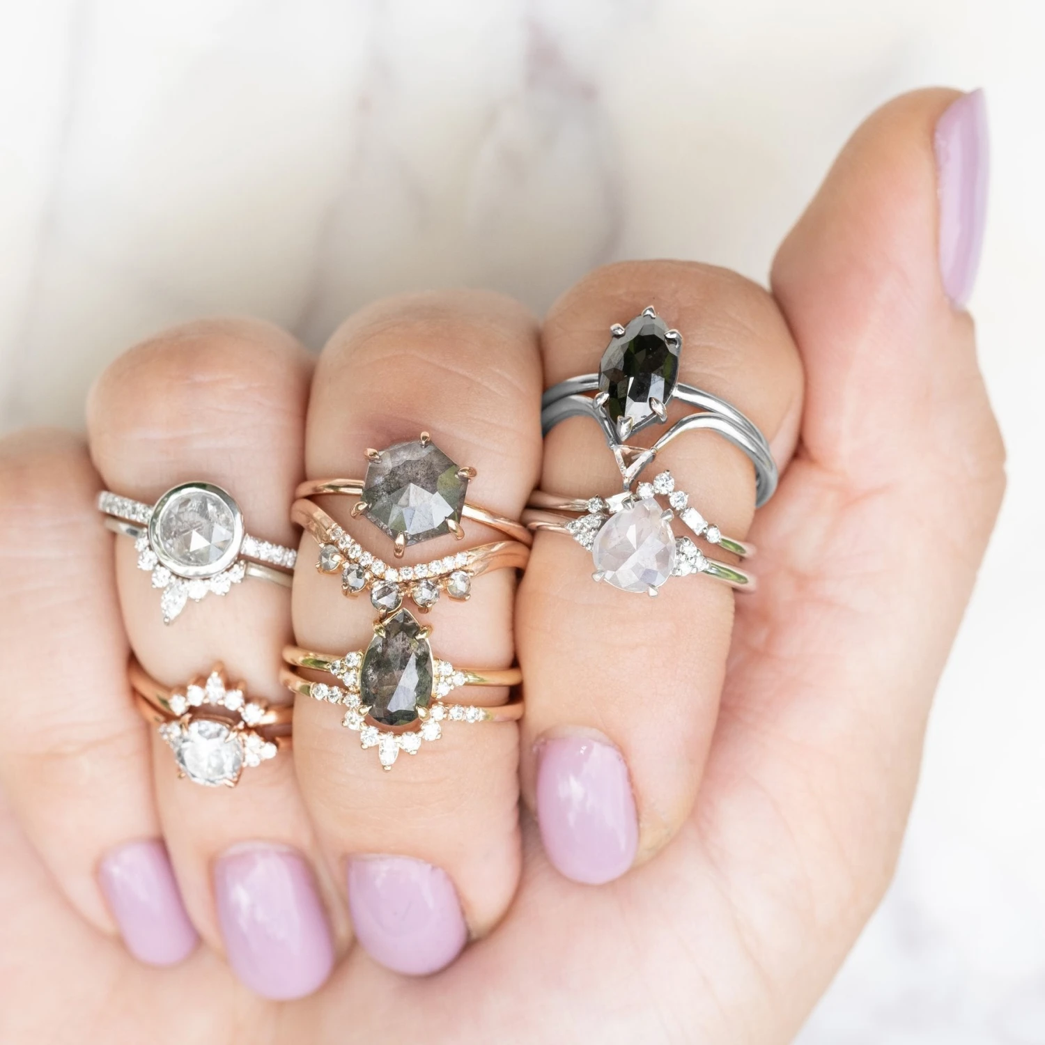 Wedding Rings: This engagement ring can be stacked with ANY of our hundreds of wedding ring options, we use the same engagement ring CAD measurements to build the wedding ring around it to ensure a great stacking set.Â